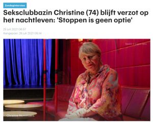 Seksclubbazin Christine (74) blijft verzot op het nachtleven: ‘Stoppen is geen optie’.